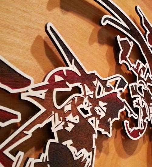 Christopher’s unique process blends natural elements such as found wood and screenprinting with the most (literally) cutting-edge laser technology, acrylic and metal to produce pieces that transcend genre and look like nothing else out there. His work includes large scale interactive installation, heavy sculpture, delicate 3D art, fabric, woodcut and intimate wall pieces. He references natural forms, sacred geometries and fractals, but also the form and function of the high tech tools used to create these shapes. Some of these pieces have been described as transformers “mid-transformation.” Breedlove’s art trembles at the intersection of cyberpathy and nature-reverence. He’s so varied and prolific, a visitor to PI&S these days might suspect that seven different artists working in similar styles have been producing pieces here…