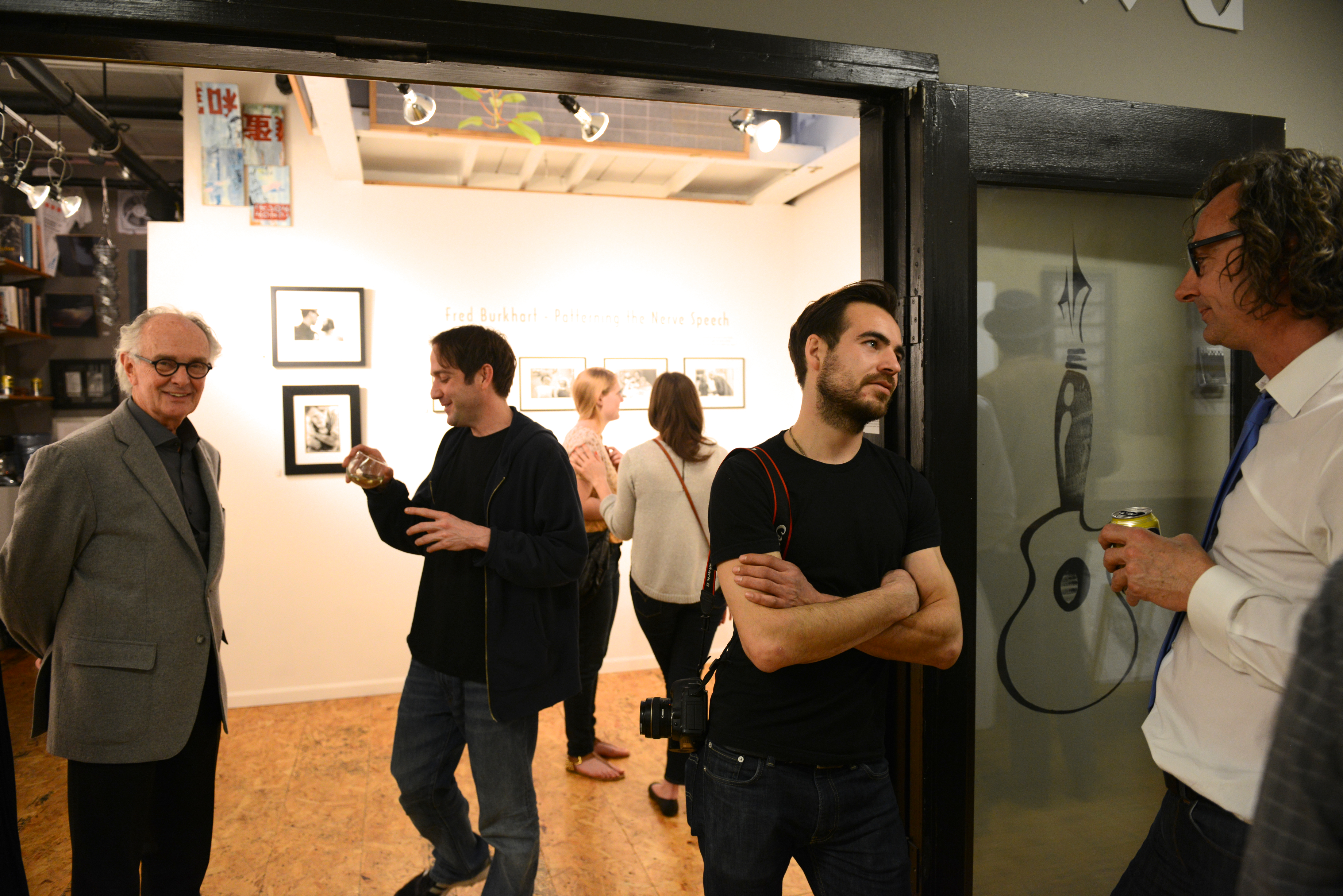 Cancer stricken artist Fred Burkhart visited Pen, Ink & Song on April 8th to greet a few collectors and gallery owners and to read from his epic poem “A Date with Noah Webster.” This photo retrospective took its name from the recurring phrase in that work – “Patterning the Nerve Speech.”